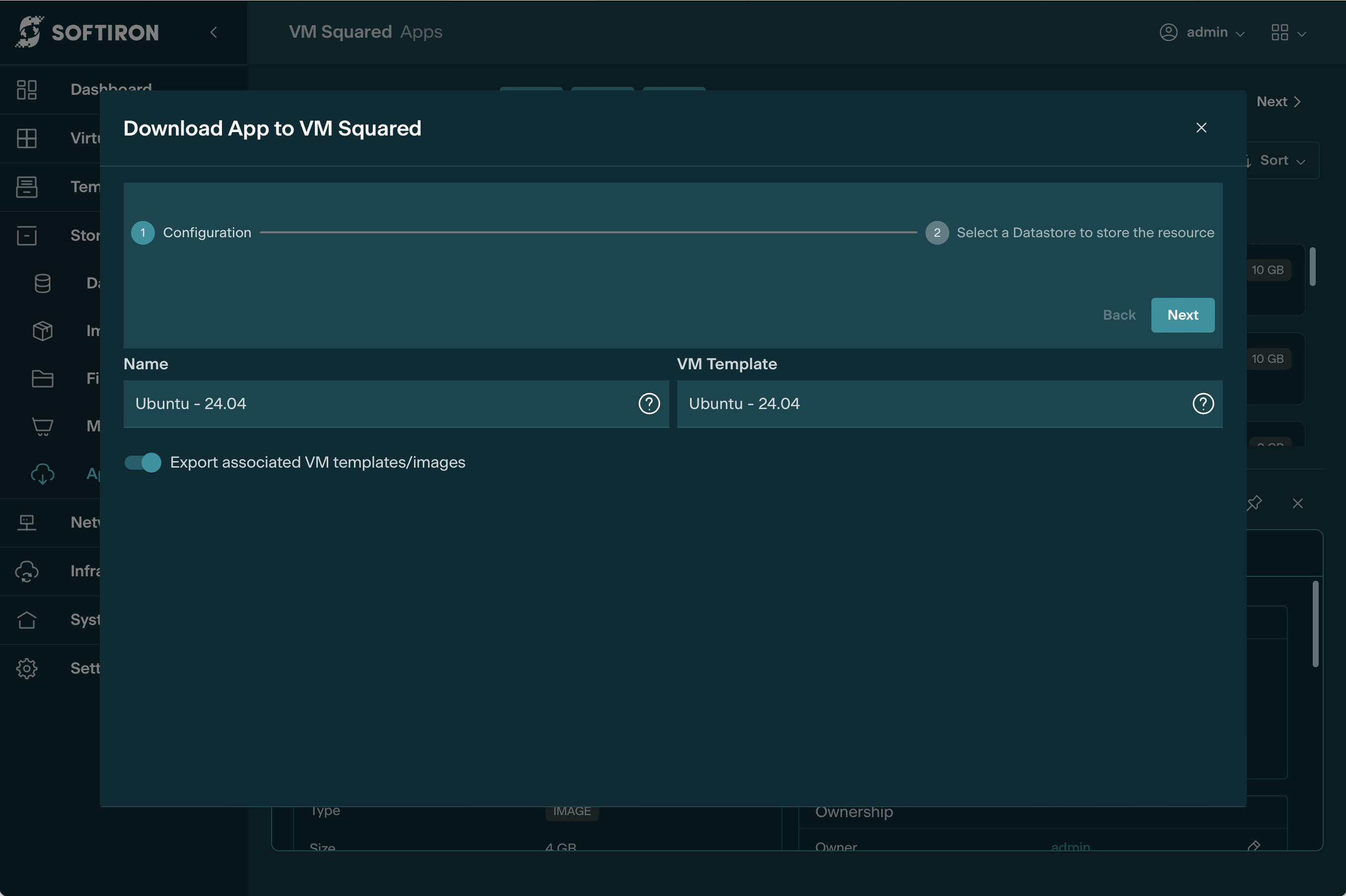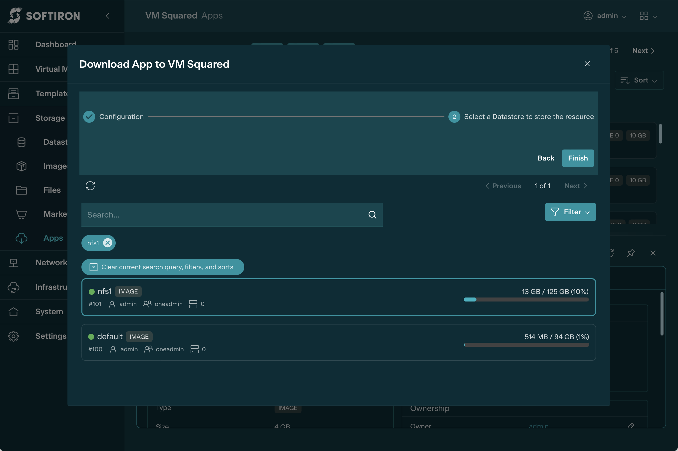 Once the external infrastructure has been configured on every host and on the VM Squared dashboard, an NFS datastore can be created. NFS datastores are configured on VM Squared through the dashboard console.