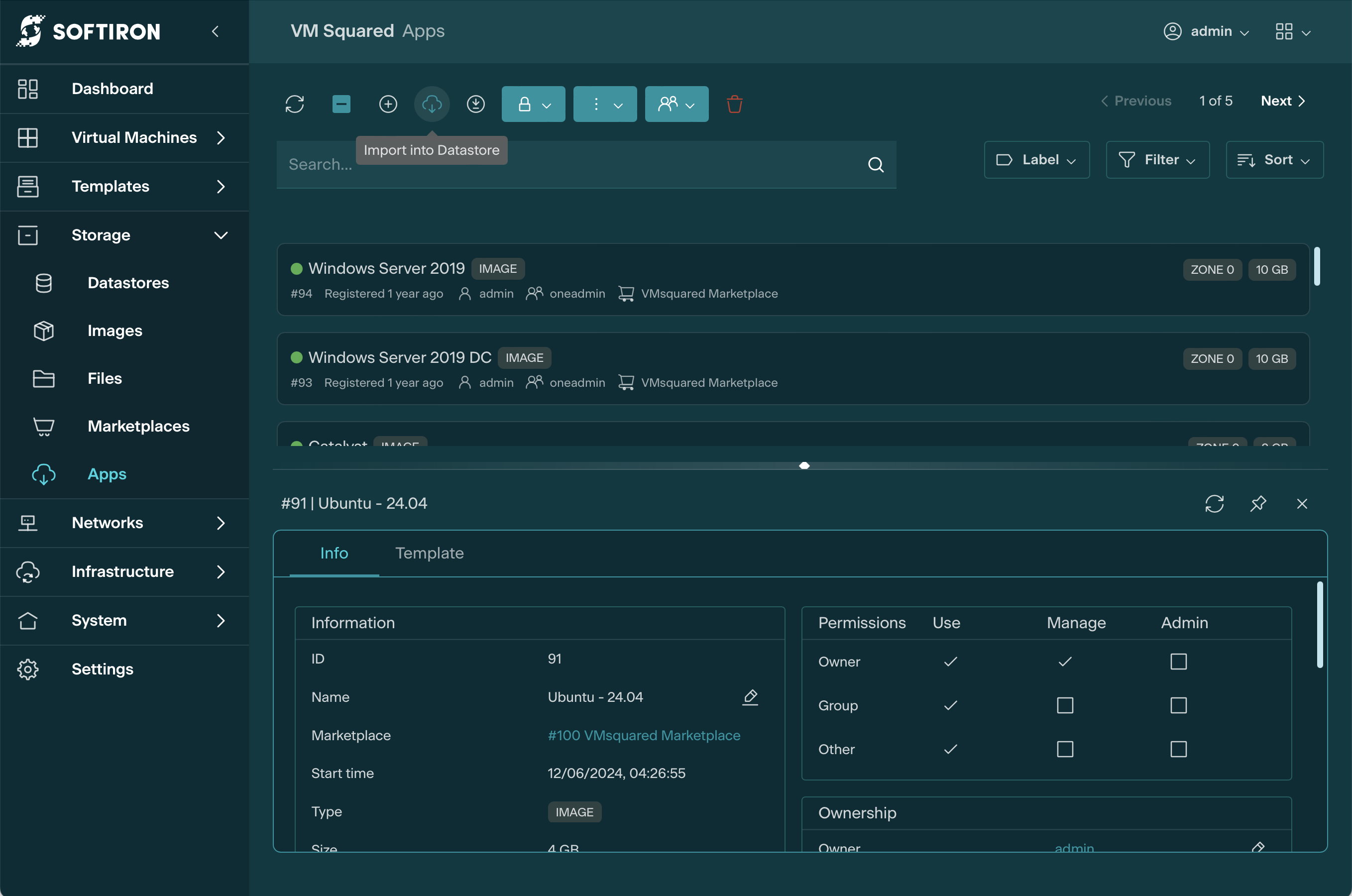 VM Squared places a lock on all datastores that prevents its deletion before its contents. All VM instances and Templates that use a specific datastore's assets must first be deleted before the datastore can be deleted.