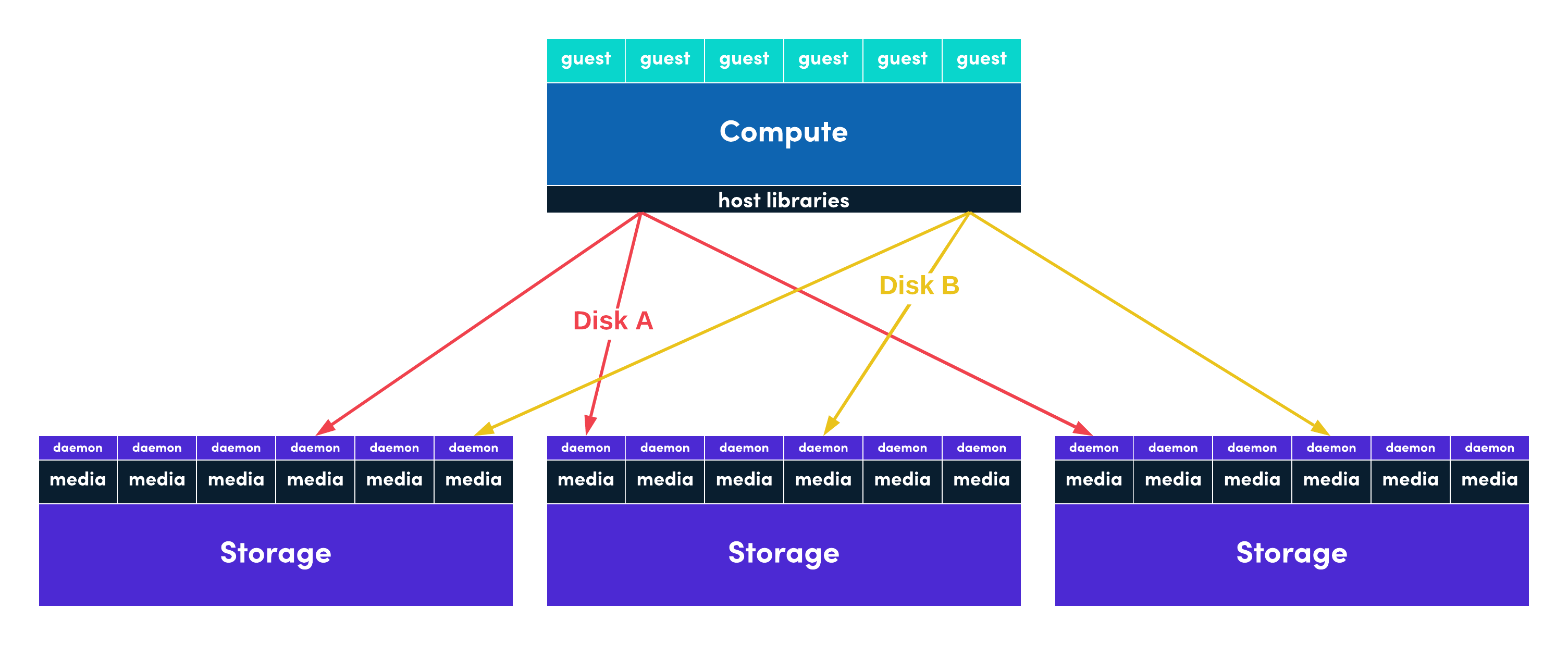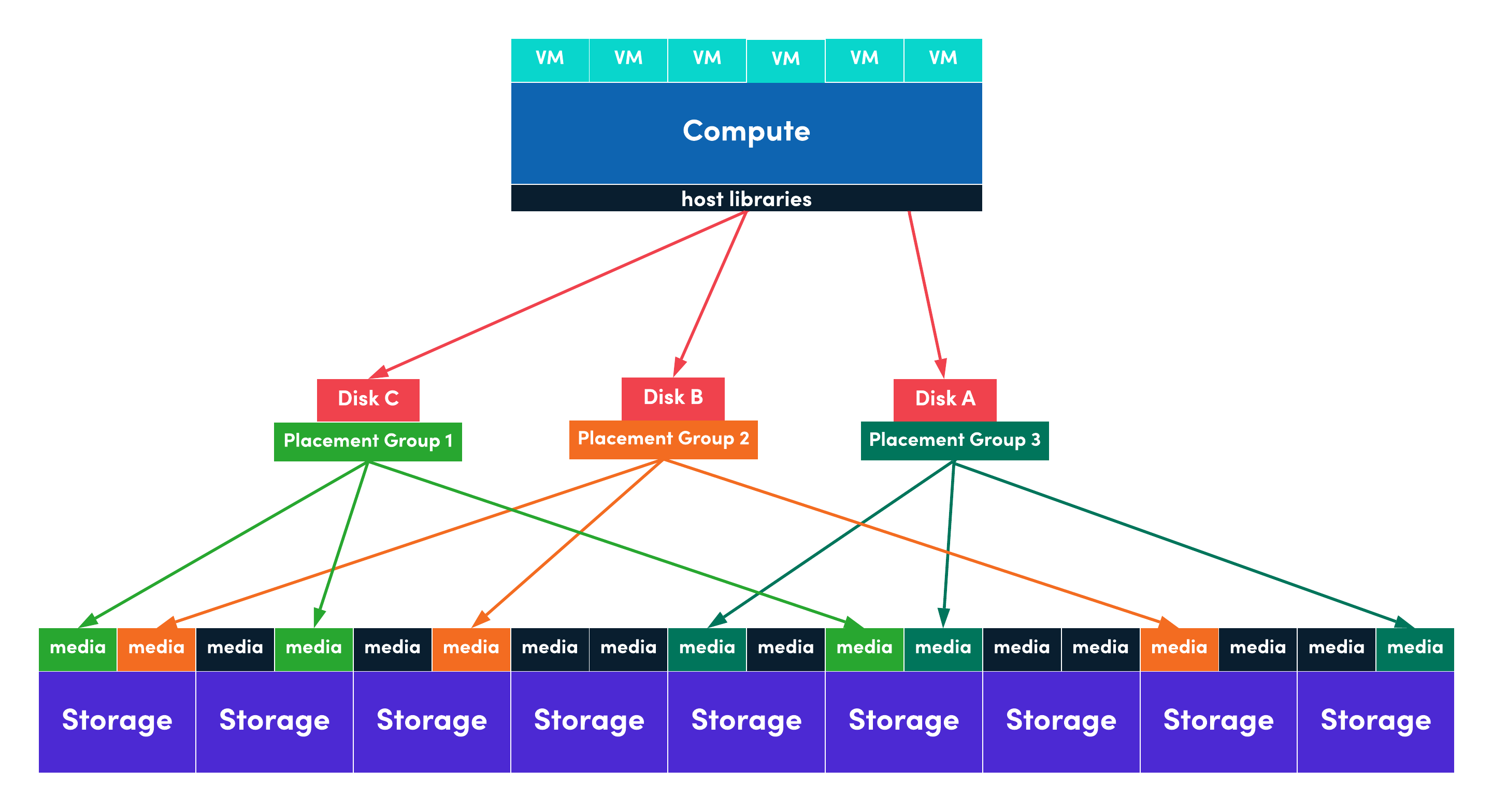 Triple replication allows you to start with just three hosts while erasure coding means that larger clusters have options to aggregate larger number of hosts and disks to improve storage utilization efficiency. Mix multiple replication types in the same cluster to provide balances towards performance or capacity as needed.