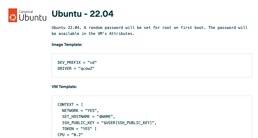 Once access is secured and you've logged into the desired VM Squared Marketplace WebGUI (SoftIron Official, Community, Partner, etc.), simply click on the item you wish to download and its page will open up with a short description and Template configurations.