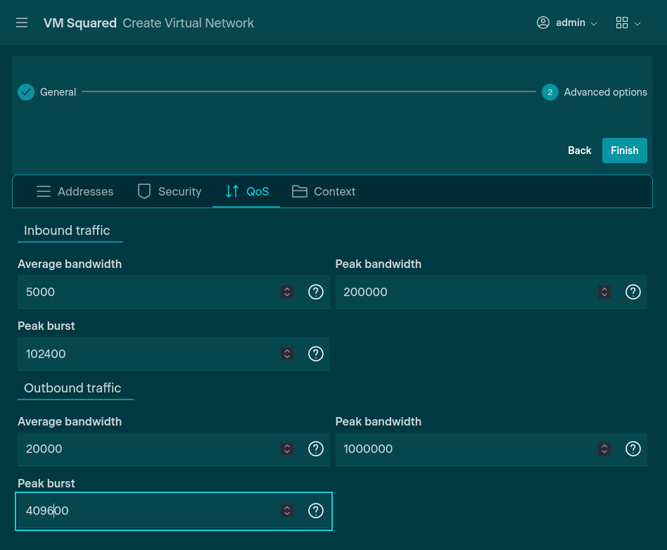 This process can become tedious to set for multiple tenants; therefore, if the general options will be reused for several entities, a Network Template can be created in the same manner as outlined above with the exception of clicking Network Templates in lieu of Virtual Networks.