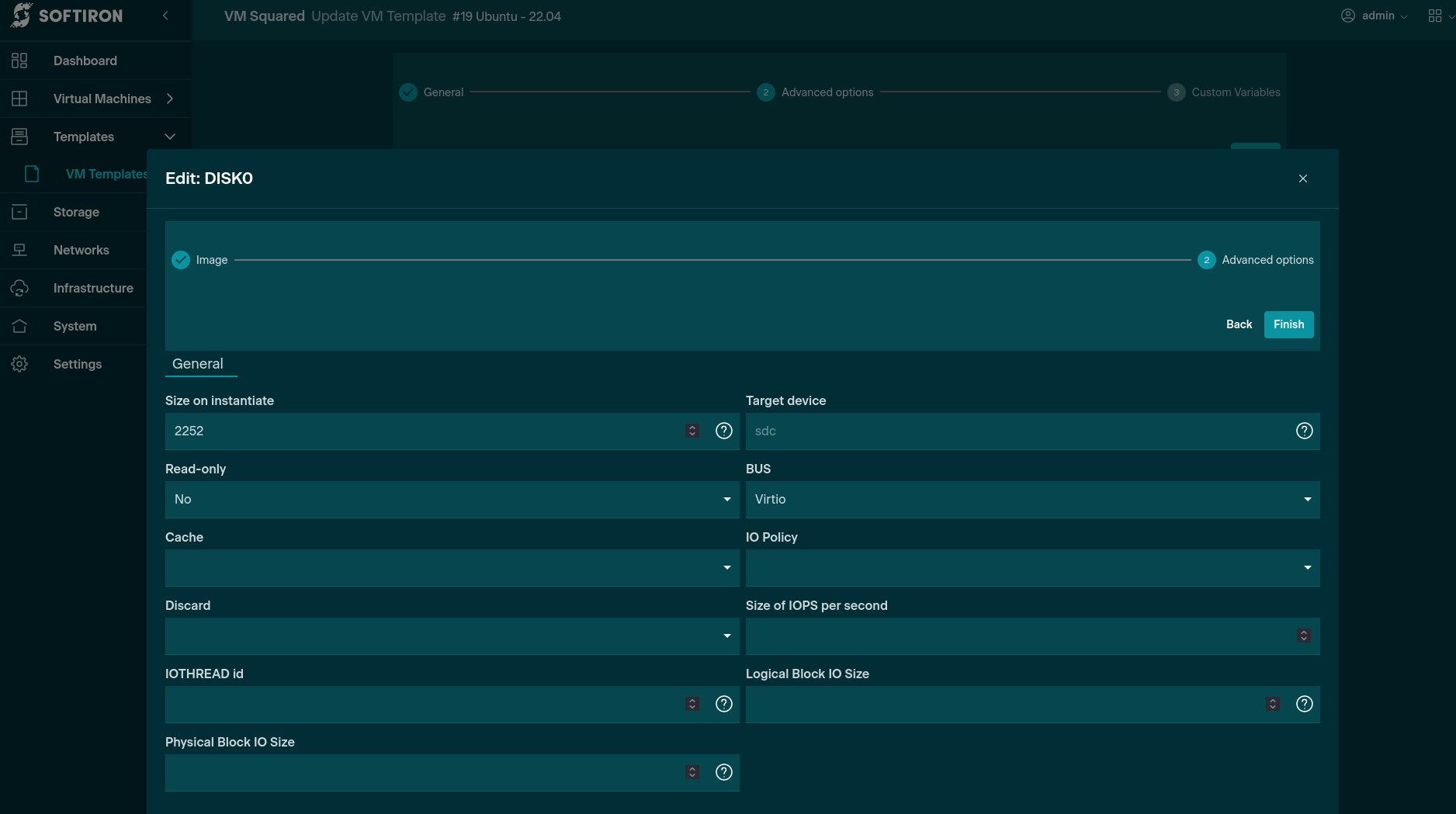 The disk attributes: BLOCKIOSIZE_LOGICAL and BLOCKIOSIZE_PHYSICAL are available options in a VM Template to improve performance for certain workloads, and both of these parameters must be defined for either to take effect.