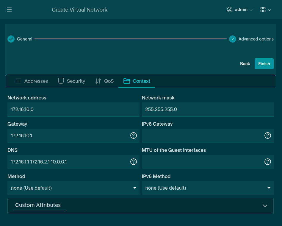 Context is used for values to be given to VMs attached to this Virtual Network.
