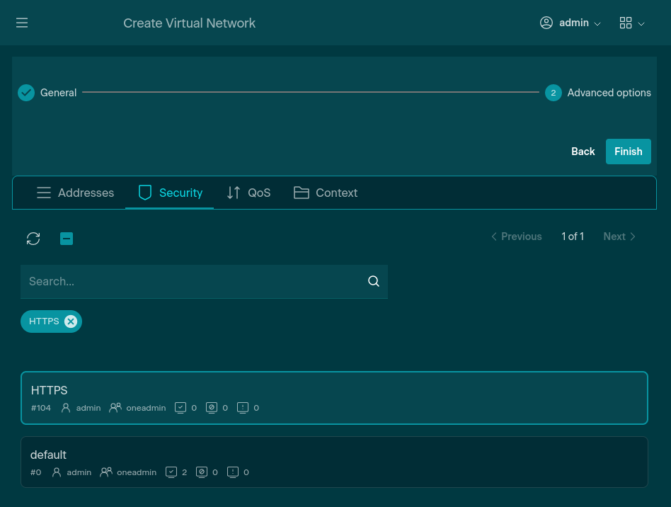 Select one or more Security Groups to apply to this Virtual Network. The resulting firewall rules are an additive combination of all selected Security Groups, so avoid "Allow All" groups if you intend to restrict network traffic.