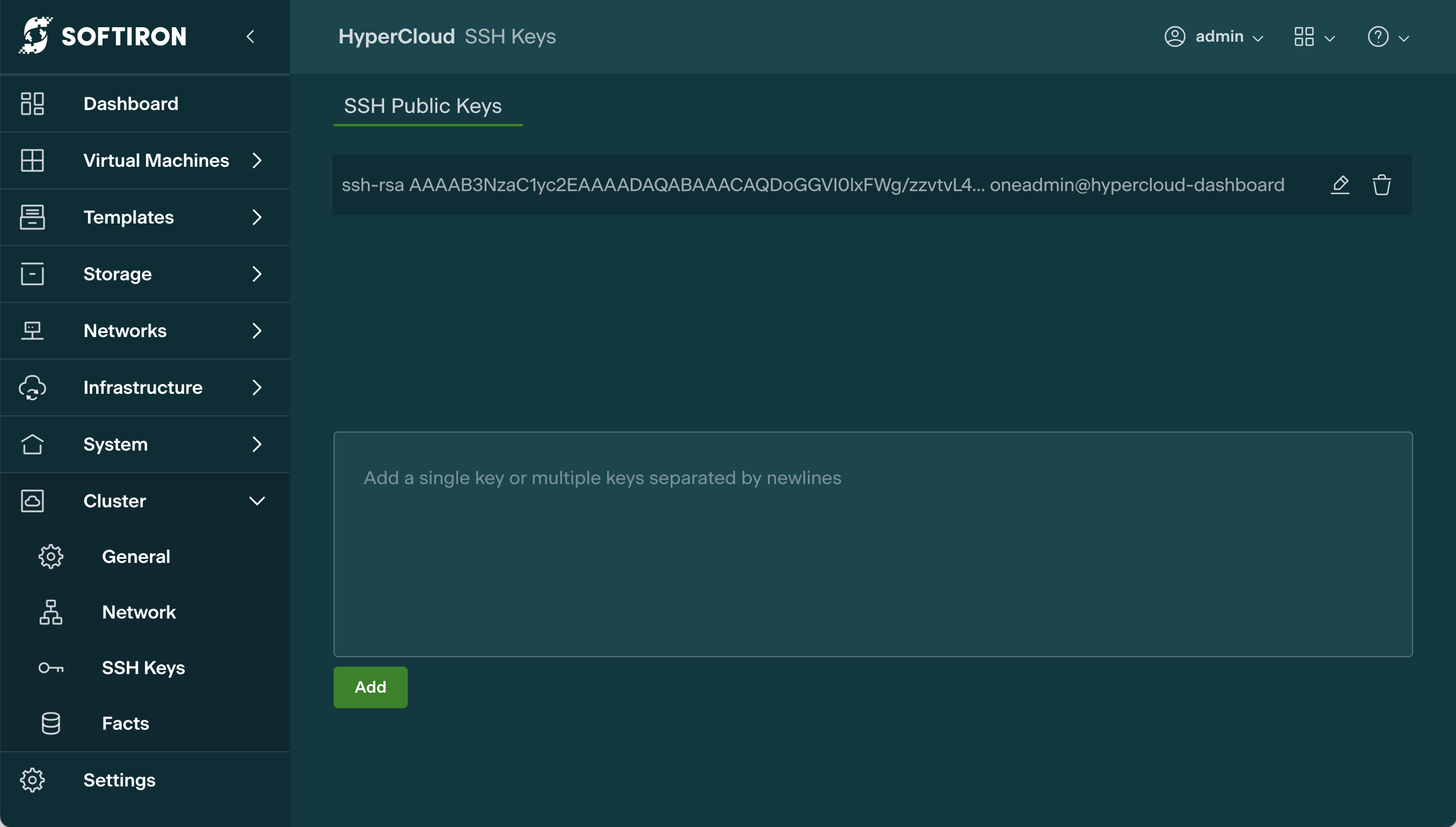 1. Navigate to the Cluster/SSH Keys panel in the Glasshouse GUI.