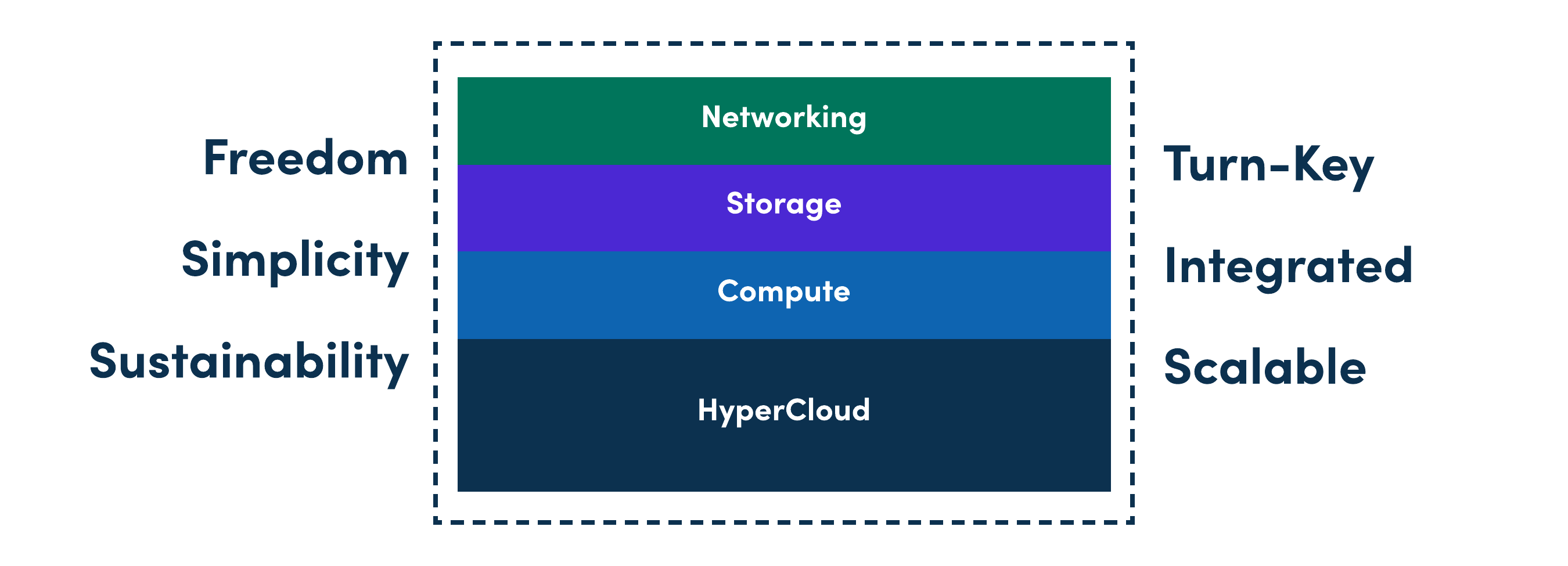 With its foundation of integrated hardware and software that prioritizes highly performant interoperability at every level, HyperCloud's deployment is a set of fixed, easy-to-replicate steps. This consistency simplifies the initial steps for getting HyperCloud running - but this doesn't mean restriction and lock-in for what you can do with it. HyperCloud aims to provide freedom to the operator wherever possible, combining the best aspects of a turn-key solution and a DIY approach.