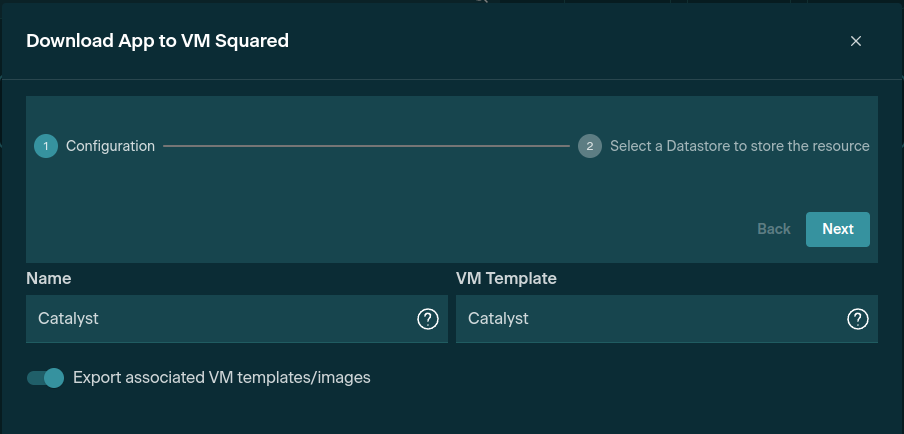 Select the Finish button, then the download will begin. After a few moments or a few minutes, depending on your connection speed, the Catalyst app will be available under Templates > VM Templates, ready to be deployed.
