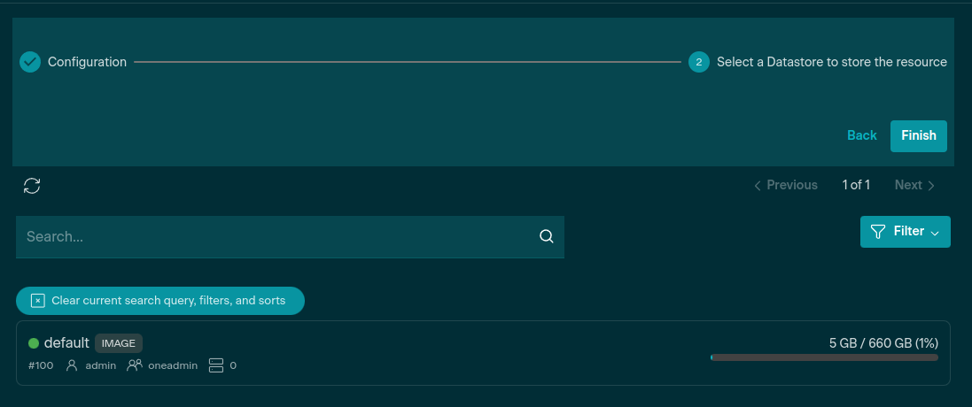 After selecting a datastore, its name should appear below the Search field.