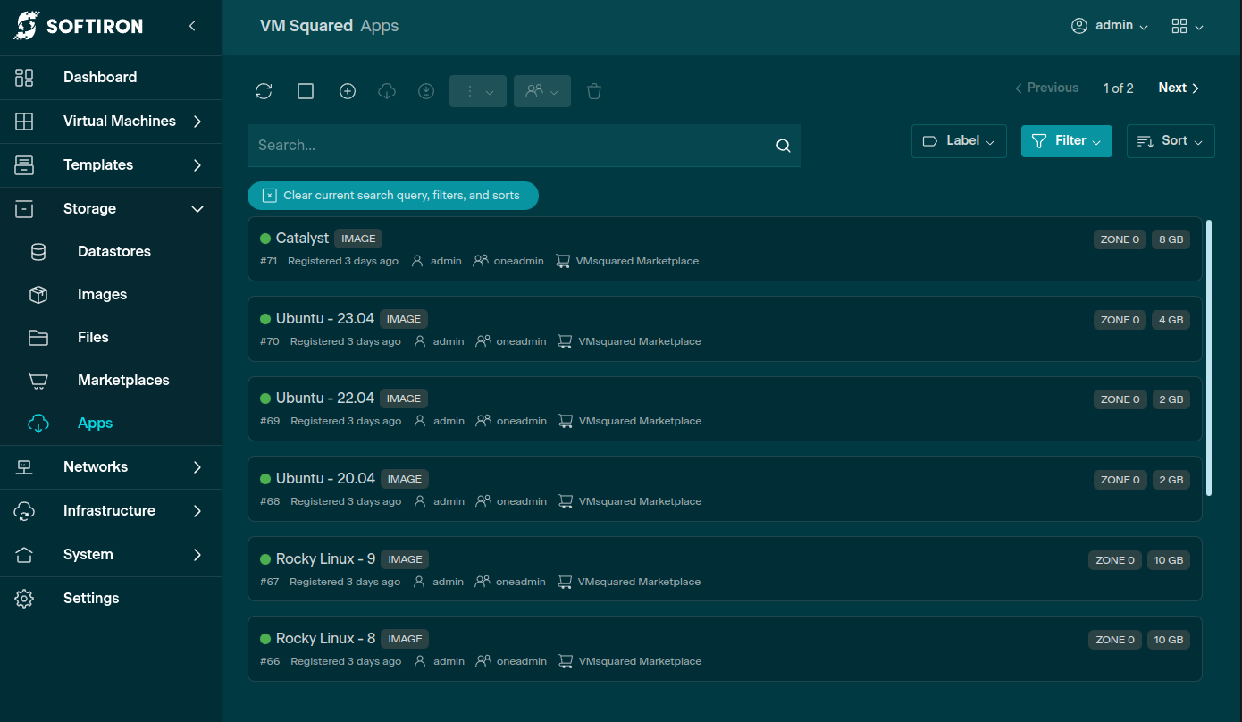 After setting up and logging into a VM Squared deployment, you can download the Catalyst App by going to Storage > Apps as shown below.