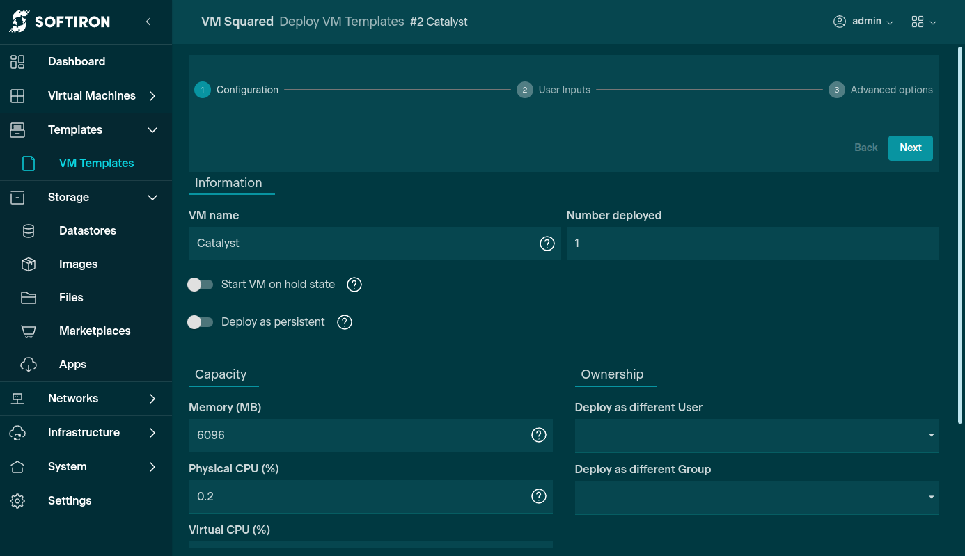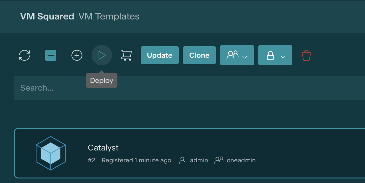 Select the Catalyst template from VM Templates and click the Deploy button to begin setting up Catalyst.