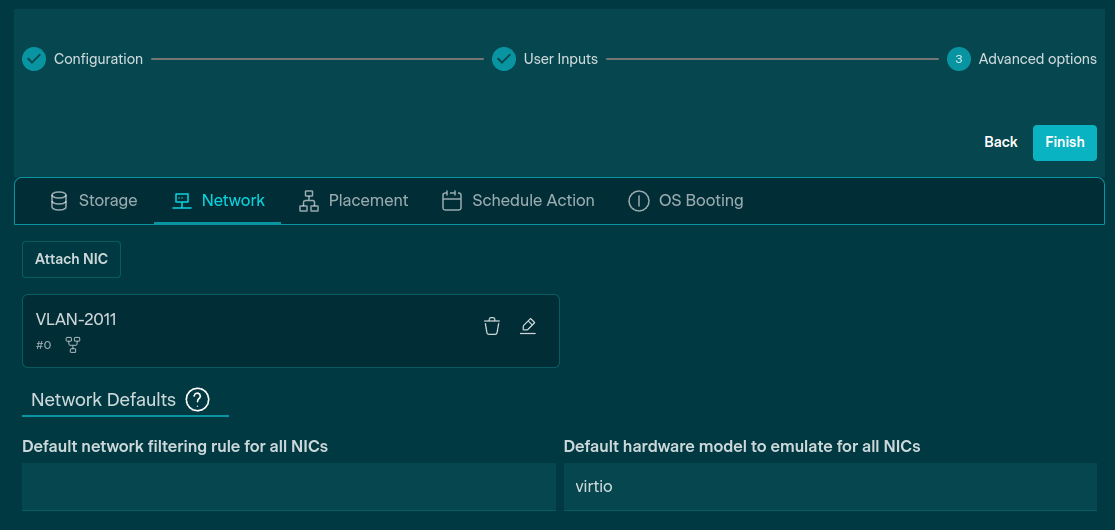 Go to the Network tab then select Attach NIC. From there, you want to connect to a network from which both the VM Squared dashboard and your ESXi host will be accessible. If routing between the two is not possible, you can multi-home Catalyst by adding multiple NICs connected to different Virtual Networks.