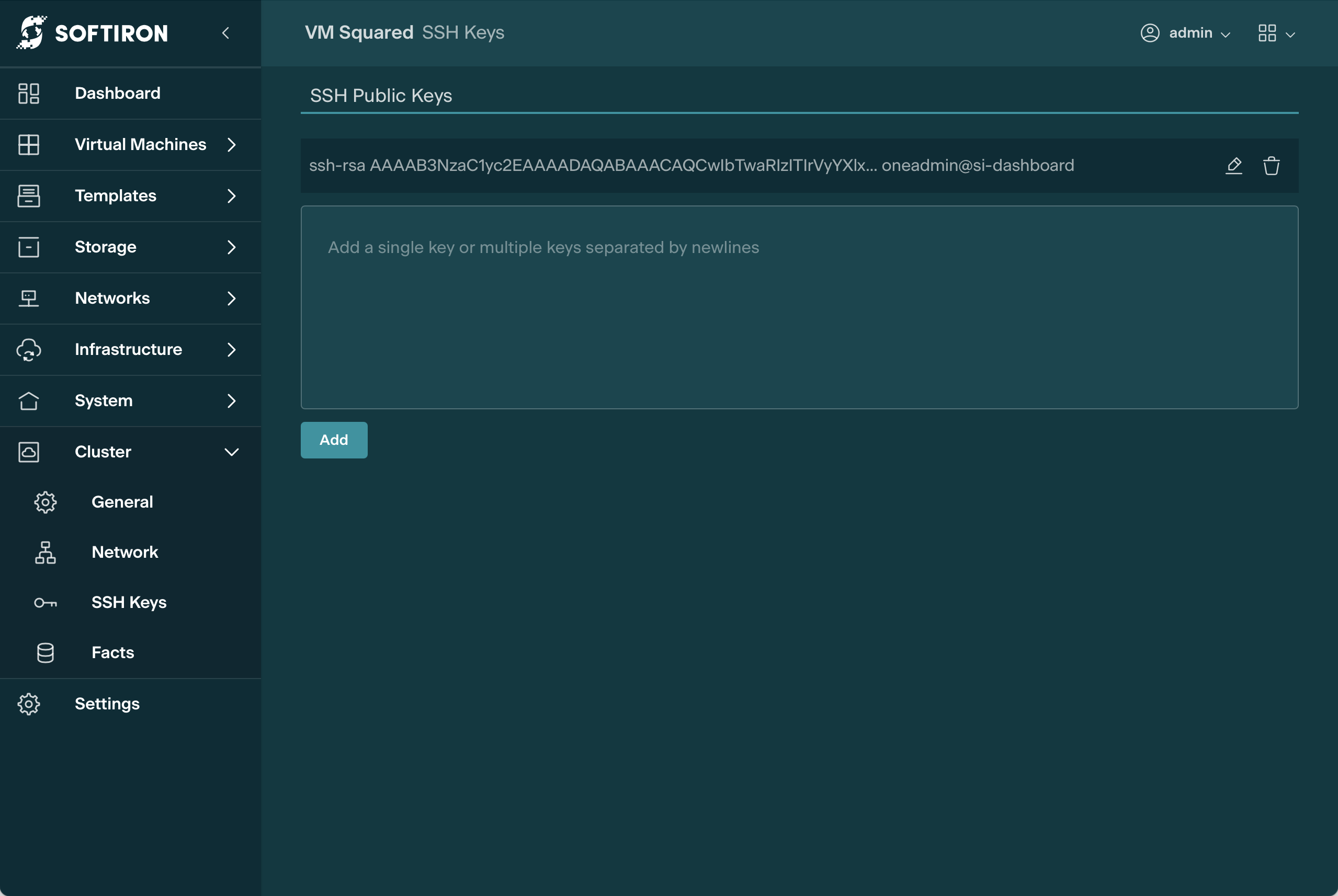 - Navigate to the Cluster/SSH Keys panel in the Glasshouse GUI.