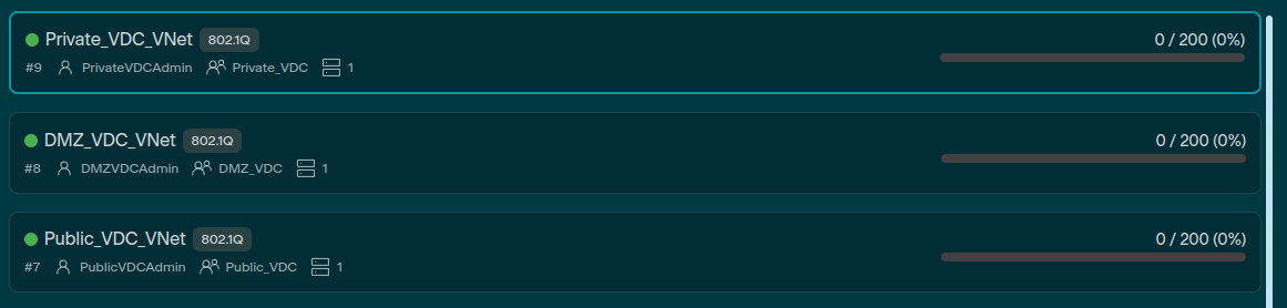Before the VDCs can be created, the Virtual Networks (VNets) must be set up. For more information on VDCs and VNets, follow the links below: