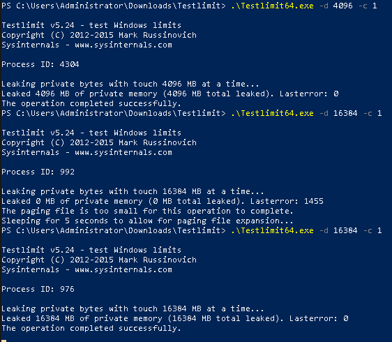 Looking at sysinternals TestLimit we can now successfully allocate the 16GB amount: