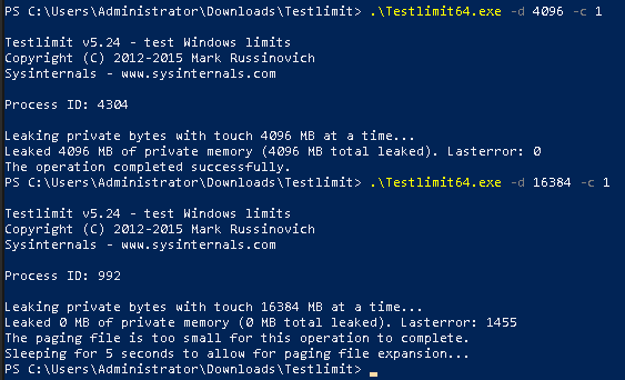 We can verify the allocatable RAM using the Windows SysInternals tool TestLimit.