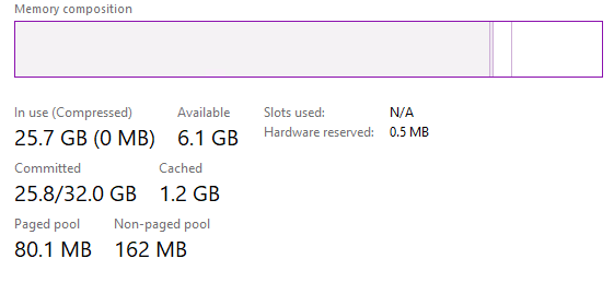 8GB allocated but a further 24GB is shown in Task Manager and currently unusable