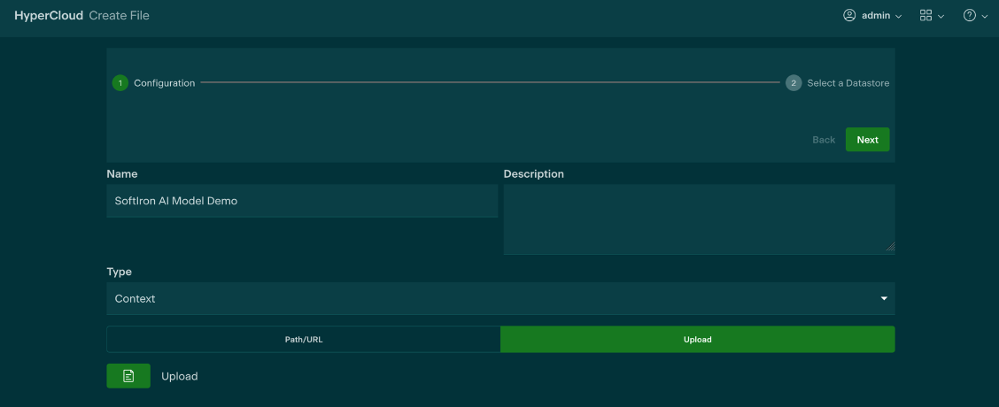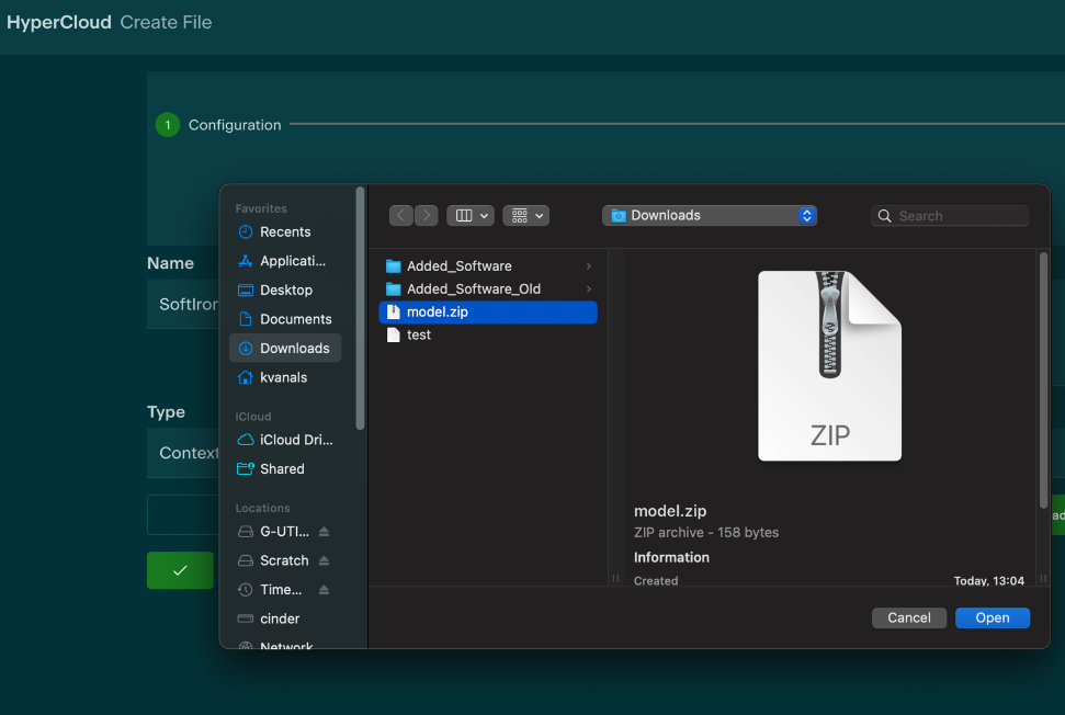 Before installation, navigate to the Storage tab of the web GUI and click on the Files submenu; this is where the model's .zip file will be uploaded for installation.