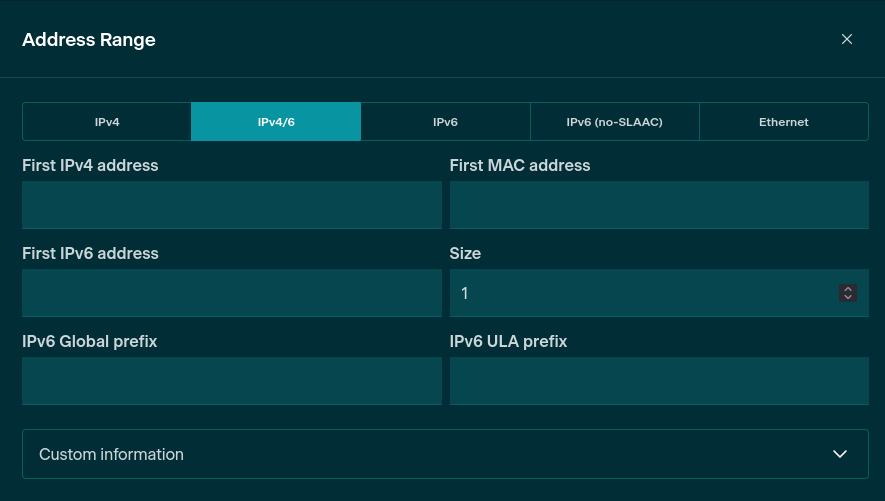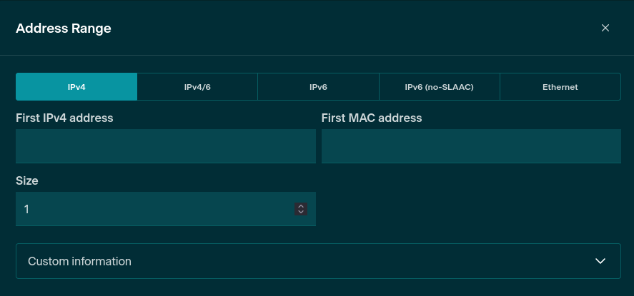 You can select the type of Address Range from one of: