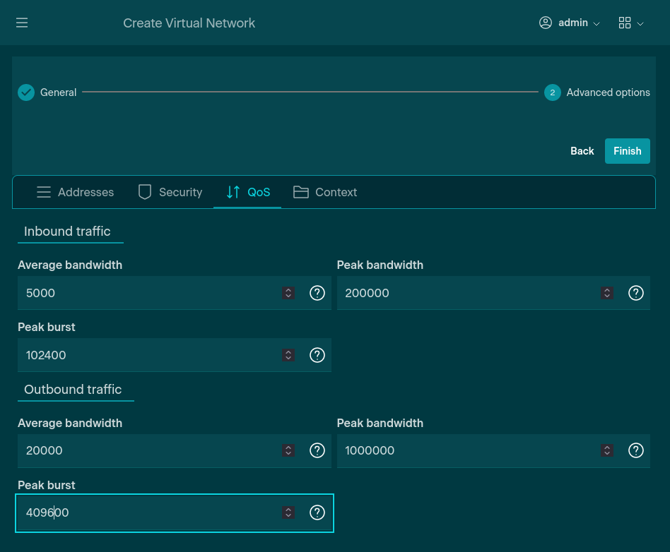This process can become tedious to set for multiple tenants; therefore, if the general options will be reused for several entities, a Network Template can be created in the same manner as outlined above with the exception of clicking Network Templates in lieu of Virtual Networks.