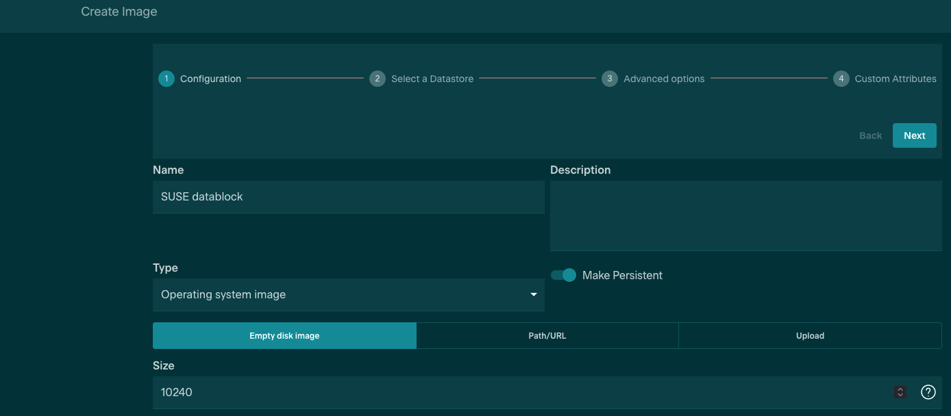 - Select Empty disk image