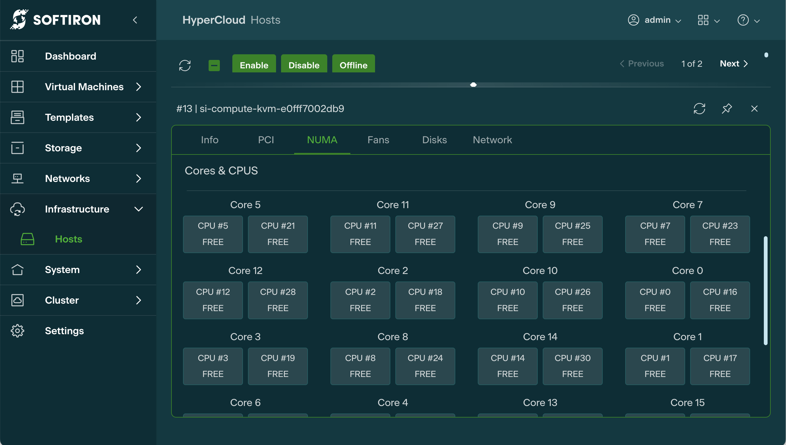 On compute nodes the NUMA tab shows information on the Cores & CPUs