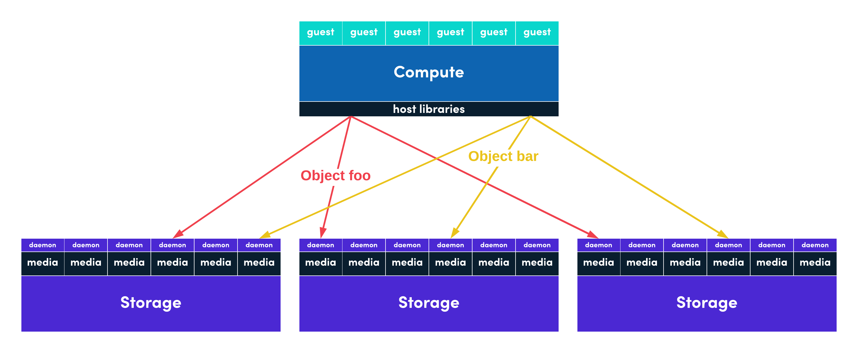 The primary goals for the storage layer in HyperCloud are resilience and scalability. As it underpins a highly-scalable compute layer, HyperCloud's storage needs to be architected to scale linearly as we scale our compute, and to make it very hard to lose data.