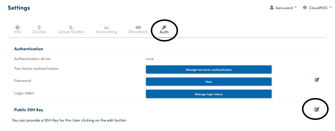 Navigate to your user settings page in HyperCloud, and click on the Auth tab.