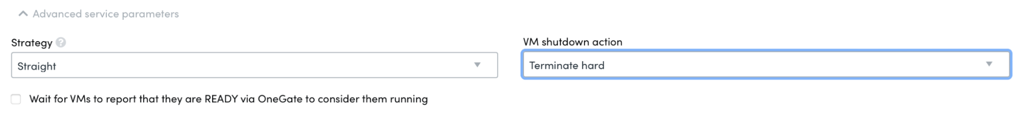 Expand the Advanced Service Parameters and set the VM shutdown action to Terminate hard