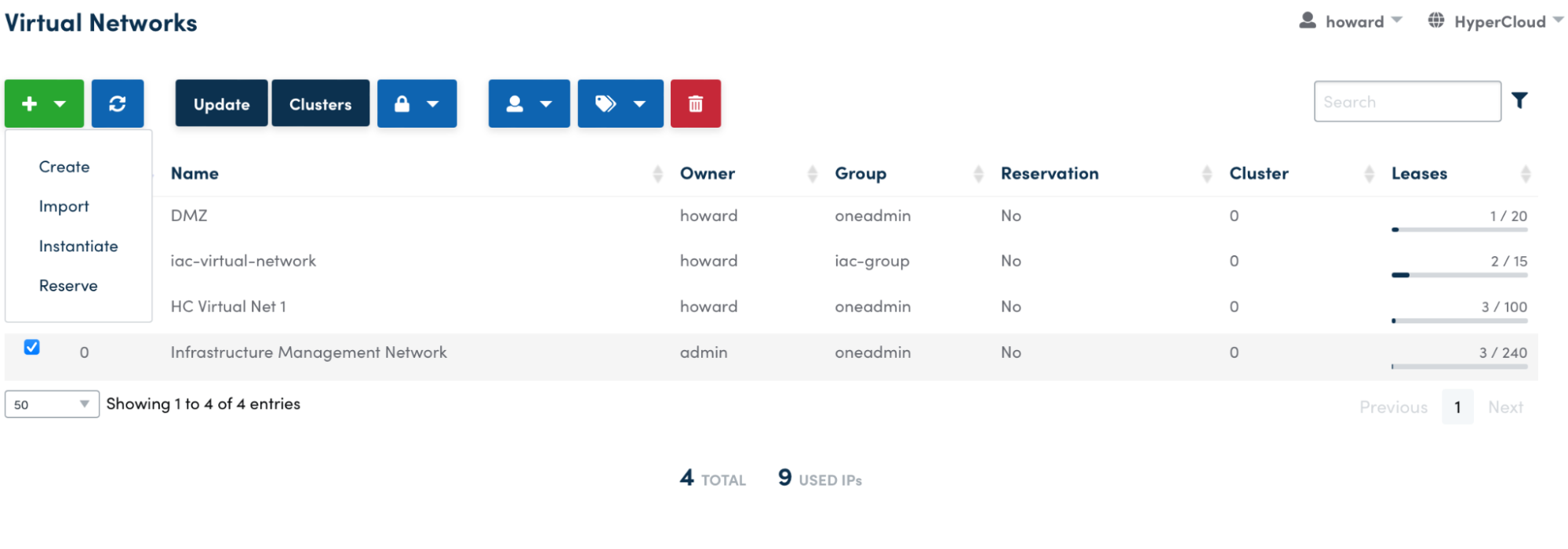 Put a tick in the box next to the network you want to use, click the green dropdown button, and select 'Reserve'.