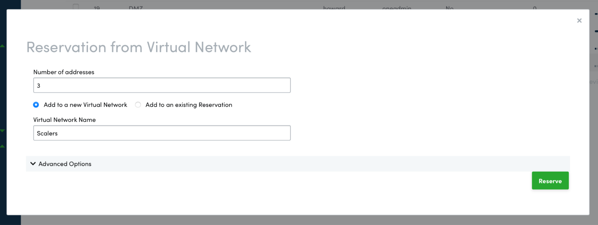 Adding a New Network Reservation