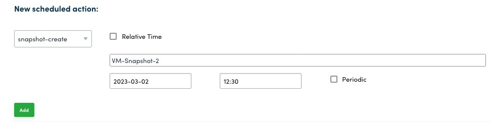 a scheduled action can be created to enact a VM command on a one-off or periodic frequency; such as, taking snapshots.
