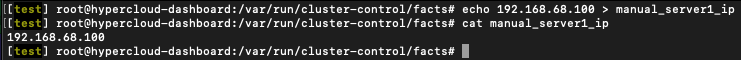 To create manual DNS entries which will become /etc/hosts entries, a cluster control fact file is created via the steps below: